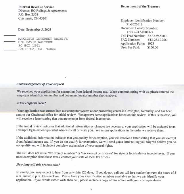 I.R.S. Letter, October 2003