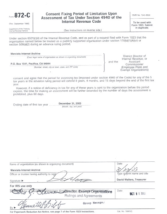 Form 872-C, December 2003