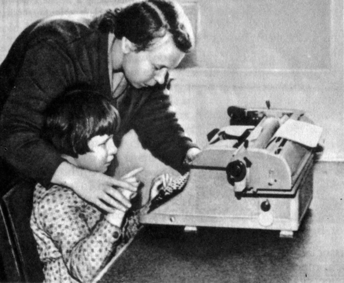 At the very end of her second year she started to show an interest in dactylic speech. She “inspected” the hands of other pupils and adults, when they were conversing using finger-spelling. Sometimes she would try to make a finger movement similar to one she had “observed” into the palm[5] of another child. Lena realised that moving fingers over the palm of another person constituted “conversation.” First attempts were then made to show her the initial letters of her teachers’ names and those of her favourite toys (doll, ball).