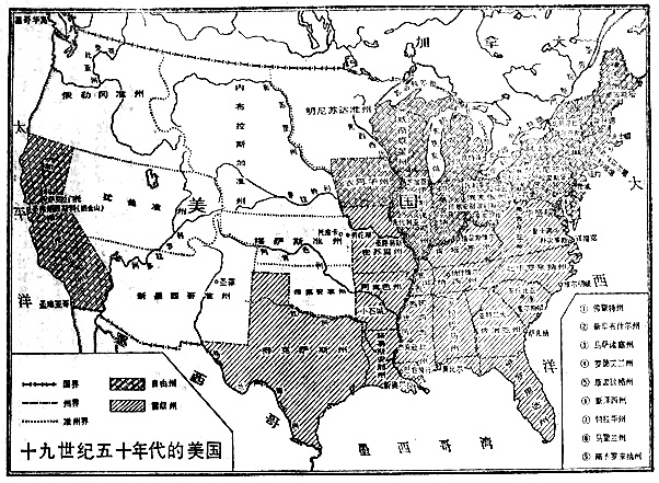 [2] 自由土壤党(1848—1854年)是有许多农民参加的资产阶级政党。该党反对奴隶制度扩展到美国西部新领地,但不要求在全国废除奴隶制度。