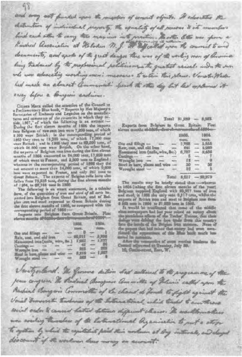 福克斯报告说,他收到了英国外交部1866年12月21日的一封公函和一个有书、小册子、报纸和信件的包裹。公函通知他说,包裹里有去年9月没收雅莱斯·哥特罗携带的文件,也就是[曾]向法国内务部长和斯坦利勋爵申请发还的那些文件。福克斯接着详细介绍了包裹里的东西,其中有一捆《人民论坛报》不是从哥特罗那里没收去的。