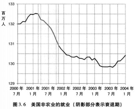 图3.6 美国非农业的就业(阴影部分表示衰退期)