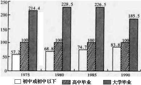 图3-3 1975~1990年间不同教育程度的收入差别 |