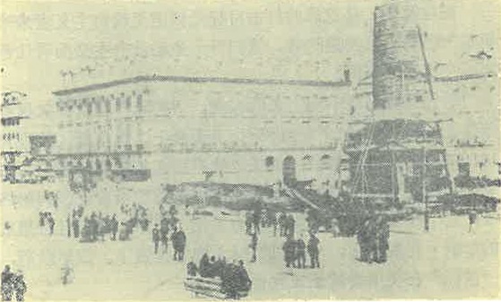 1871年巴黎公社期间人民在旺多姆广场上拆毁圆柱的情景