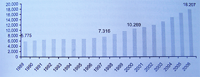 En 2007 también se vio incrementado el número de millonarios españoles. Concretamente, el selecto club de personas con un patrimonio superior al millón de dólares tuvo en nuestro país un incremento del 4%, lo que en cifras absolutas nos da un total de 164.000 personas. Si bien este ritmo es inferior al de la media mundial, aún en 2007 superó en 3 puntos porcentuales la media europea, ésta del 3,7%. Informe anual, Merrill Lynch-Capgemini, 2007