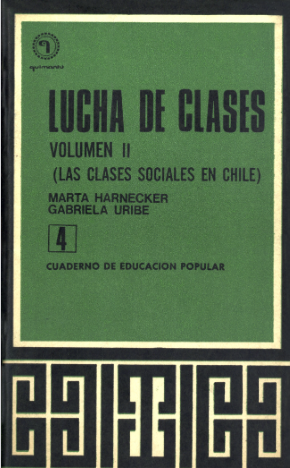 Lucha de clases Autor: Marta Harnecker & Gabriela Uribe Fecha: febrero 1972 Colección: Cuadernos de Educación Popular. Número 4, volumen II Editorial: Departamento de Ediciones Especiales, División Editorial, Empresa Editora Nacional Quimantú Ltda., Chile (Edición acualizada y "universalizada, 1979) |