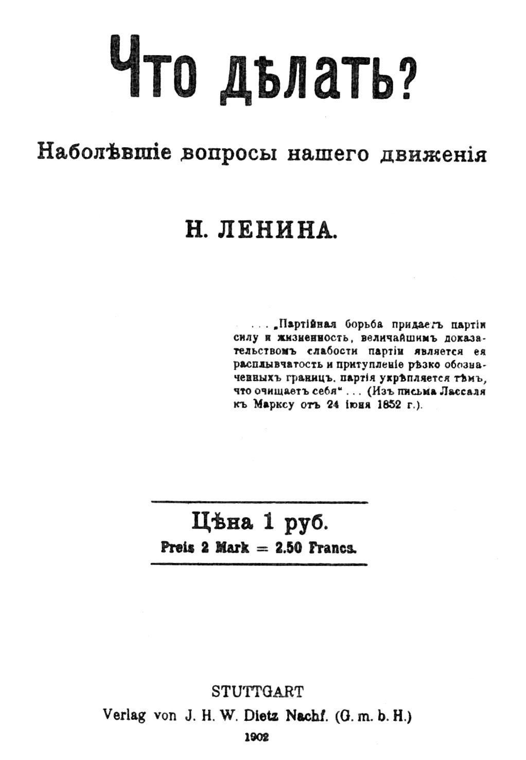 Primeira edição : como livro separado, em março de 1902, em Estugarda, na Editorial Dietz .
