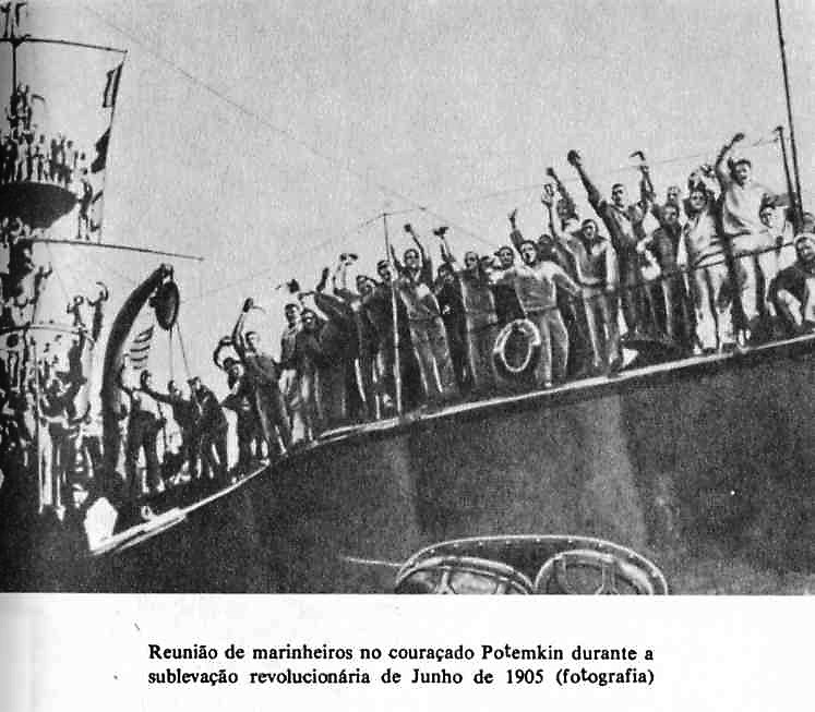 Em Junho, a tripulação do couraçado Potemkin amotinou-se. A bandeira revolucionária nunca tinha sido içada num navio de guerra tão grande. E, sob esta bandeira, o Potemkin navegou até Odessa onde havia uma greve geral. O esquadrão especial enviado a tomar o navio rebelde não disparou um único tiro, porque os marinheiros recusaram-se a cumprir as ordens dos seus oficiais e mostraram total simpatia para com os seus companheiros. Embora a tripulação do Potemkin não conseguisse estabelecer o contacto necessário com o proletariado das cidades do mar Negro e fosse mais tarde obrigado a ir para um porto romeno e abandonar aí o navio, o impacto deste histórico motim foi tremendo. O governo czarista sabia agora que nem sequer podia confiar no apoio das suas forças armadas.