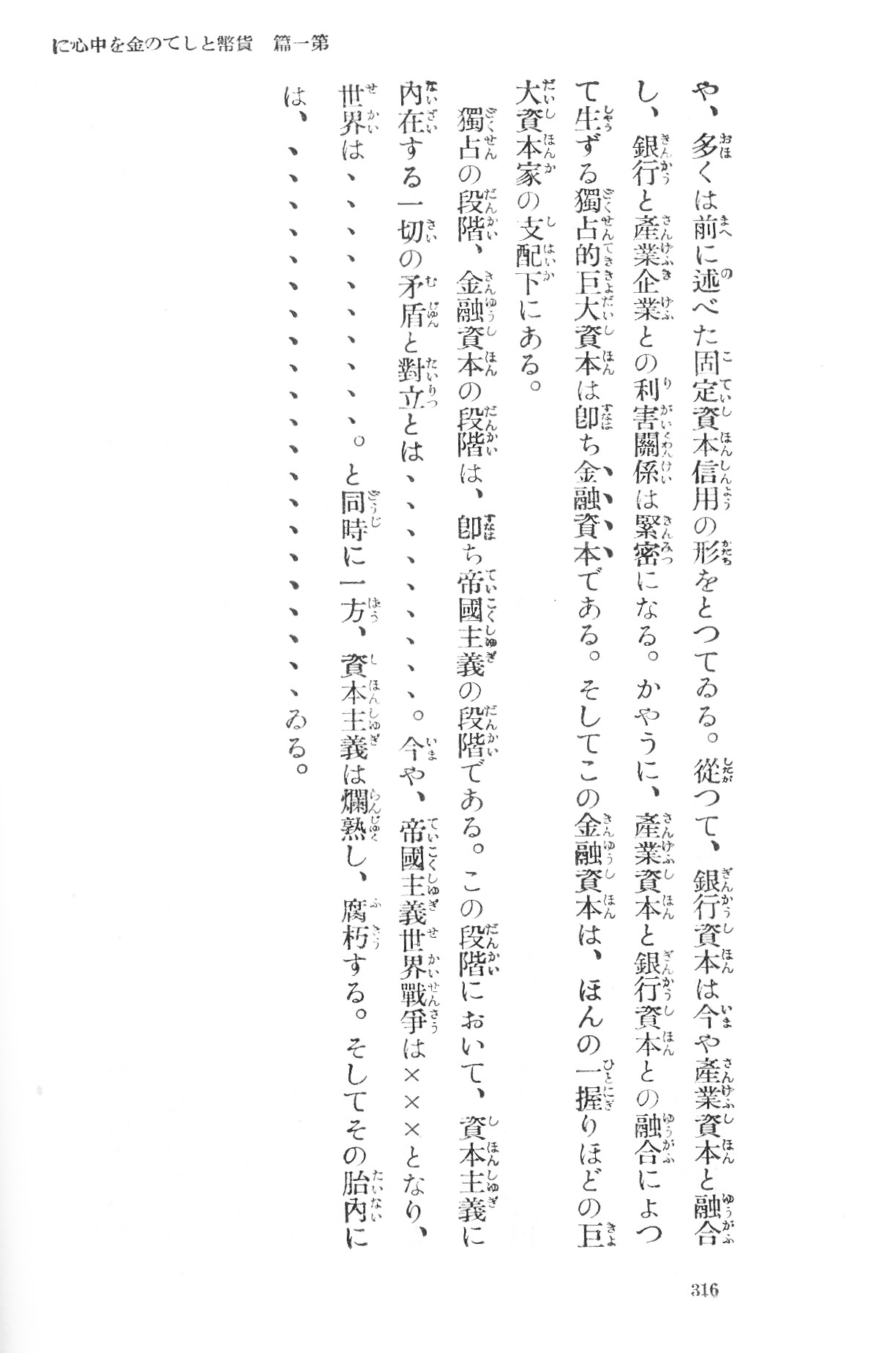 This is a translation of a chapter of Inomata's roughly 900-page book, Kin no keizai (Political Economy of Gold), published in 1932 by Chuo-kōron. The book sold extremely well, despite heavy-handed government censorship that crossed out whole sentences and paragraphs (see image at bottom of this page).