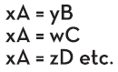 resulterar av den tillfälliga naturen hos denna form, och utgör som vi sett summan av alla möjliga uttryck för en enskild varas värde. Detta skapar den välbekanta sekvensen av enkla värdeekvationer, till exempel: