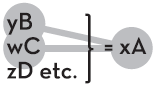 Denna observation tydliggör en grundläggande egenskap hos den allmänna värdeformen - nämligen att på samma gång som ekvivalenten blir det universella uttrycket för alla andra varors värde, blir den också till den universella förmedlaren mellan dem alla. Tidigare såg vi hur enskilda varor relaterades till sitt eget värde genom en ekvivalents förmedling (alltså genom reflexion). Nu ser vi hur detta, som ett kännetecken för den allmänna formen, utgör en del av en annan relation, nämligen den typ av förmedling som beror av den allmänna ekvivalenten. Genom att spegla sig i en och samma vara som värdekvantiteter, speglar alla varor ömsesidigt varandra i egenskap av värdekvantiteter. Denna ömsesidighet mellan vilka två varor som helst, denna reflexion genom vilken de förhåller sig till varandra som värden, påminner om den interaktion mellan enskilda varuägare som karakteriserar varusamhället. Men här rör det sig om en ömsesidig relation som förmedlas genom den allmänna ekvivalenten.[15] Den allmänna ekvivalenten fungerar som en förmedlare på två olika sätt, dels genom att uttrycka värdet hos varje enskild vara, och dels genom relationen mellan varje varas värde och varje annan varas. Den andra formen av förmedling påminner om vad som kallas syllogistisk förmedling. I en syllogism förenas två ytterligheter genom ett förmedlande mellanled. I vårt fall förmedlar den allmänna ekvivalenten mellan vilka två varor som helst. För att illustrera denna poäng, lägg märke till hur relationen mellan yB och wC förmedlas genom deras ömsesidiga relation till xA: