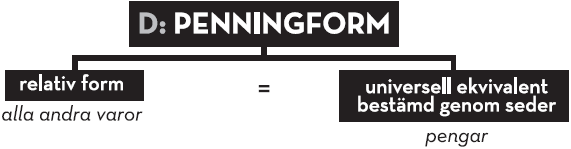 [4] Ronald Meek, Studies in the labour theory of value, (Lawrence & Wishart, 1973), 173-174. A. Leontiev ägnar ungefär fyra sidor åt värdeformen i sin Political economy, (Proletarian Publishers, 1974), 64-67, och I.I. Rubin gör endast något bättre ifrån sig i sin Essays on Marx's theory of value, (Black & Red, 1973), 115-123.