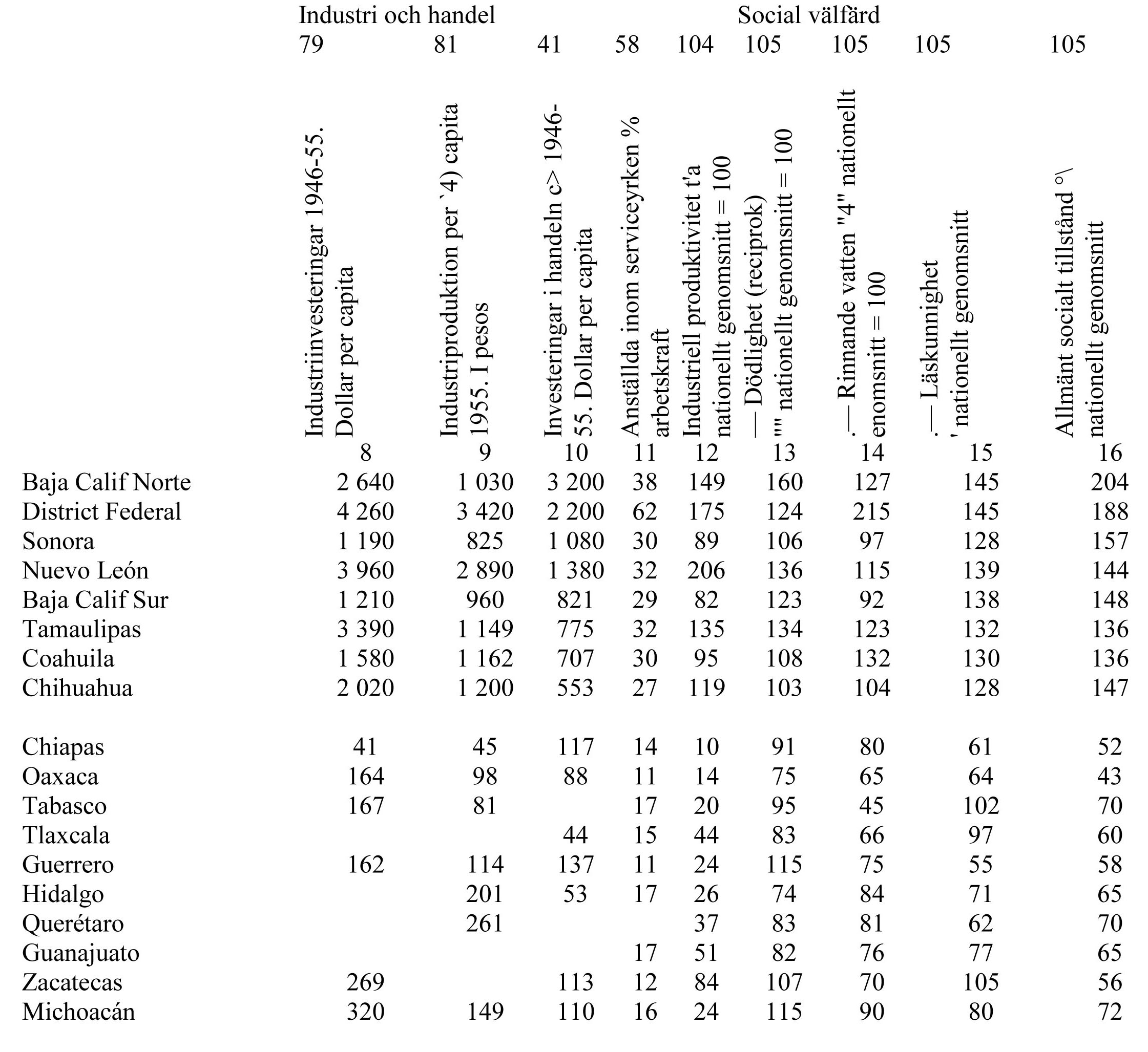 De relativa följderna av händelser i Mexikos södra och norra delar sedan andra världskriget har redan framgått av diskussionen ovan. De sammanfattas kanske bäst av de siffror över den sociala välfärden som presenteras nedan.