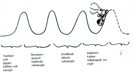Det väsentliga i sammanhanget är dock inte själva gränsen, utan att en sådan gräns finns i det nuvarande skedet, liksom det fanns i det föregående. Historien kan, sett i detta ljus, delas in i tre eller fyra teknologiskt klart avgränsade skeden, bestämda av den maximala energiförbrukningen, som var möjlig och tillåtlig i varje skede: 1) samlar- och jägarkulturer, 2) herdekulturer, 3) jordbrukskulturer, och 4) industrikulturer. Den teknologiutveckling, som har skett inom ramarna för var och ett av dessa skeden har bestått i att utnyttja de inneboende möjligheter, vilka frigjordes vid övergången till den nya grundläggande energianvändningsprincip, som kännetecknade det nya skedet.